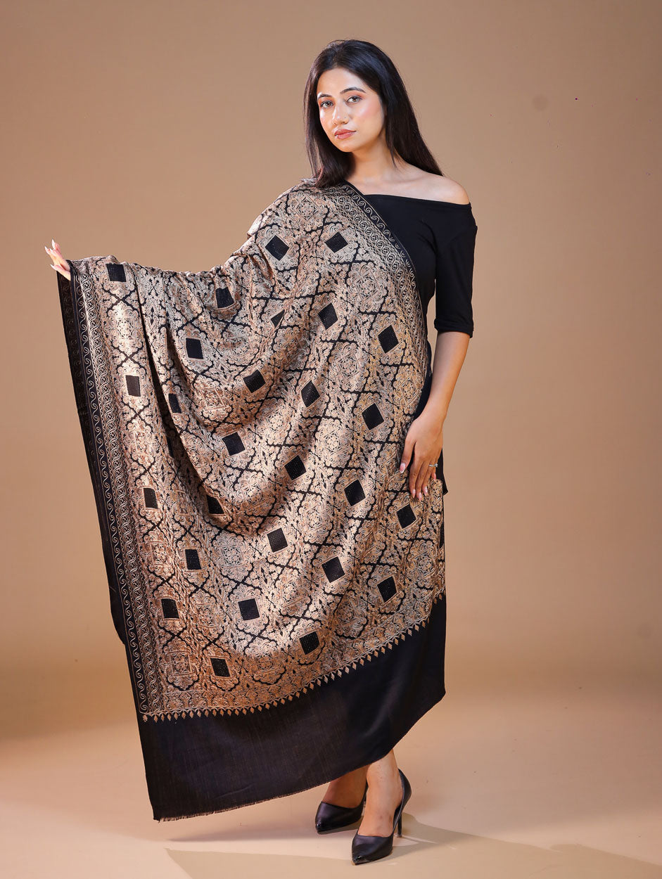 Each colour is woven separately in a precise pattern. Shades captured in it, are from the colours of flawless beauty of Kashmir valley